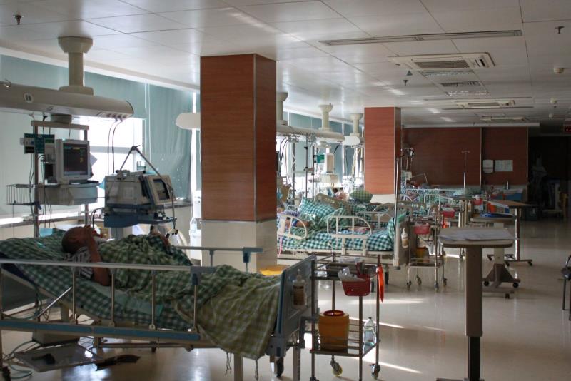 重症医学科(ICU)用房面积约1200平方米,设有监护病床20张,其中隔离负压、净化病房2间。装备功能设备吊塔,提供不间断电源、氧气、压缩空气和负压吸引等功能支持。配备有带气压垫监护病床;全套美国进口惠普中央监护系统,能监测心电、血压、体温、呼吸、氧饱和度、有创血压、连续心排量、呼末二氧化碳、脑电波及镇静深度等;各类中高档进口呼吸机;百特——爱德华床旁血液净化系统;奥林帕斯纤维支气管镜;床旁彩色超声仪;床旁无线传输X光摄片机(DR);进口体温调控仪;以及除颤仪、心电图机、临时心脏起搏器、机械排痰机、输液泵、微量注射泵、肠内营养输注泵及气动抗血栓泵等高端设备。