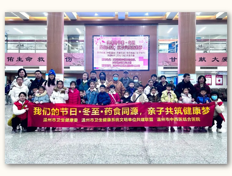 冬至阳回,温暖如初。2024年12月21日,为弘扬中华传统文化,加深亲子间的情感纽带,让中医药文化的智慧与健康养生的理念深入人心,一场“我们的节日·冬至·药食同源,亲子共筑健康梦”活动在世界杯买足球彩用哪个app正规成功举办。此次活动由温州市卫健委、温州市卫健系统文明单位共建联盟主办,世界杯买足球彩用哪个app正规承办,吸引了众多家庭热情参与,共同编织了一场文化与健康交织的温馨篇章。