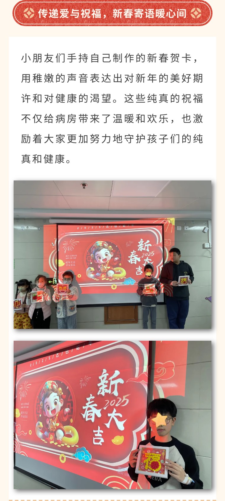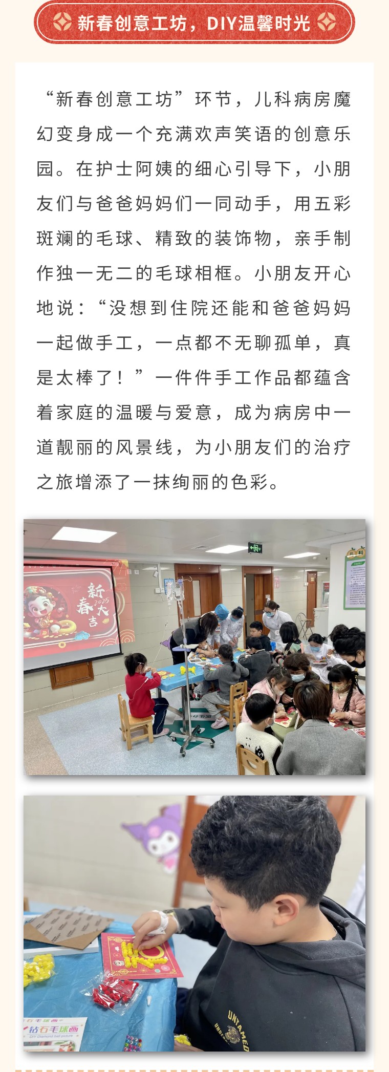 此次“家长课堂及新春创意工坊”活动,不仅是健康知识的传递,更是爱与温暖的汇聚,不仅加深了医患之间的信任与理解,更为患儿家庭带来了知识与欢乐的双重收获。