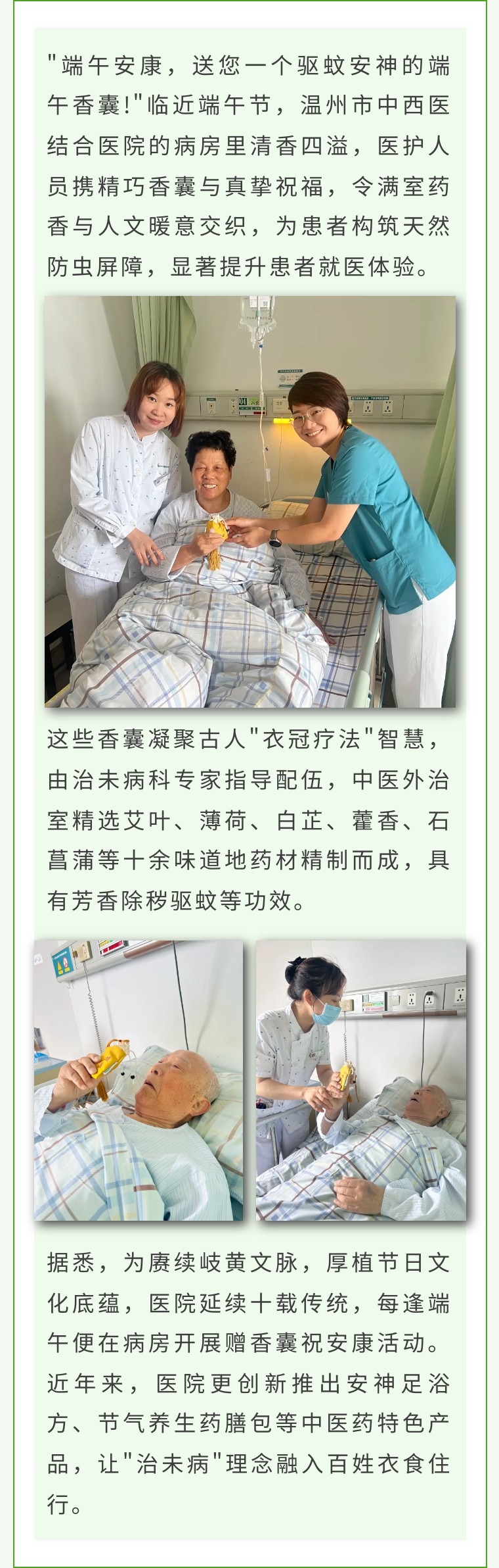 端阳传古韵,芳草寄温情——温中西医十载接力“赠香囊祝安康”活动