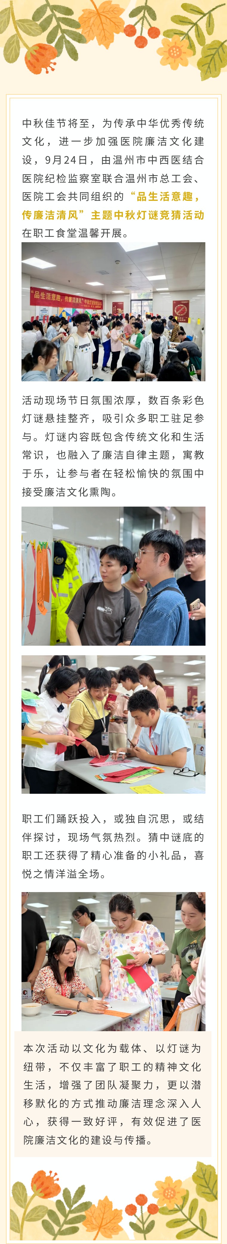 品生活意趣,传廉洁清风——温中西医圆满举办中秋灯谜竞猜活动
