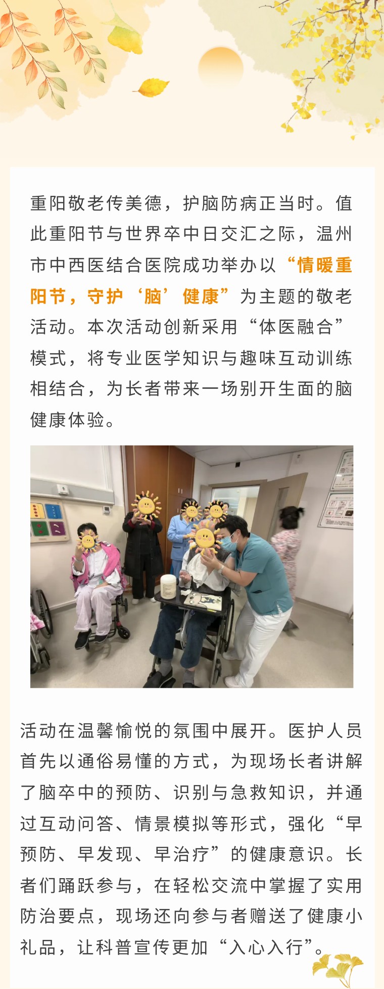 【东风文明】情暖重阳,护脑安康:温中西医成功举办体医融合敬老活动