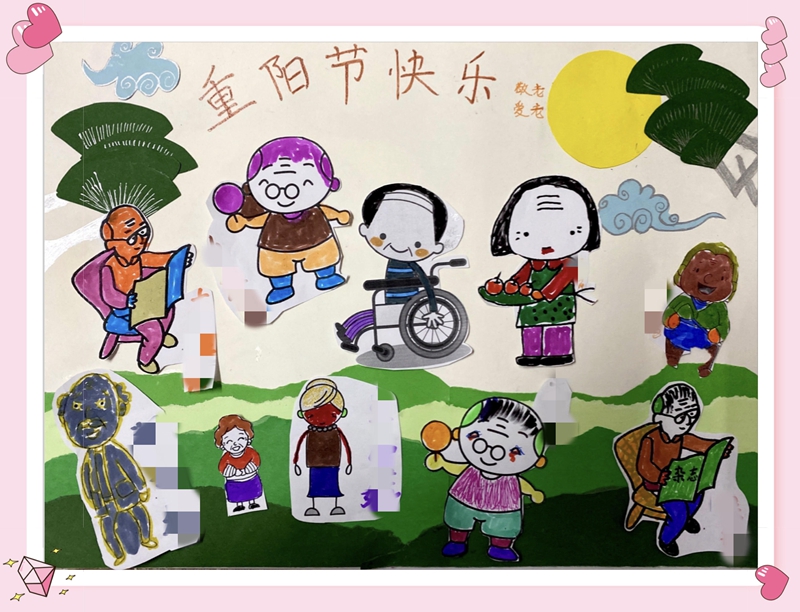 练习手指波曼操既能活动手指又能锻炼大脑,老人们跟着视频纷纷伸出了双手,有模有样地摆动着手指。长者们选择各自喜欢的人物图像进行涂色、修剪并粘贴在登高踏秋图上,还开心与自己的作品合影,并作为留念。