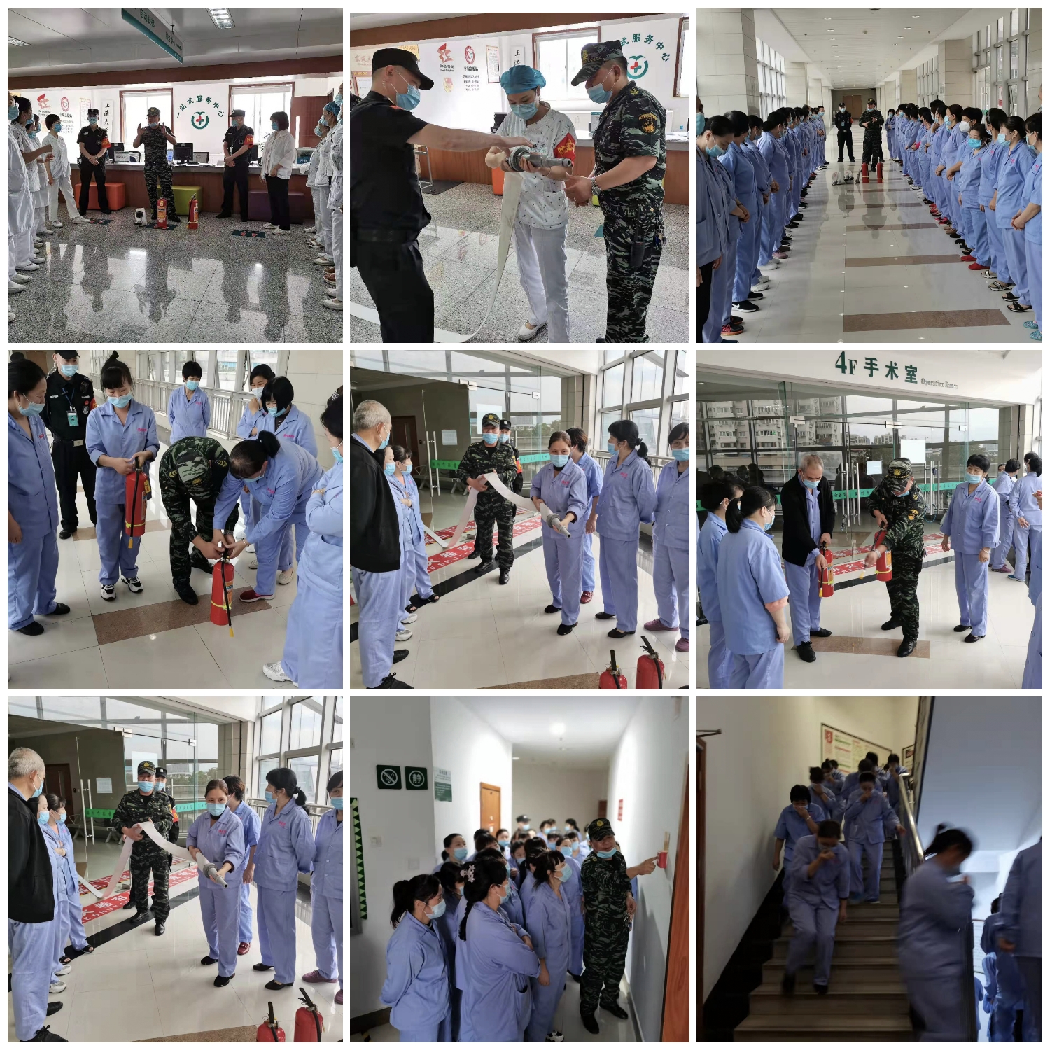 当天中午,保卫科针对护工进行消防知识培训和高楼疏散逃生演练,并讲解消防理论知识和法律法规知识,让护工保洁人员了解遇到火灾的正确处理方法、消防设施的使用方法,切实提高院内工作人员的消防应急处置和灭火逃生能力。