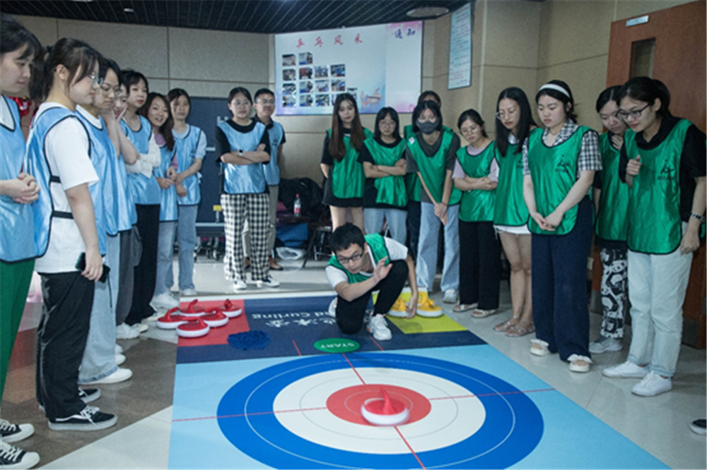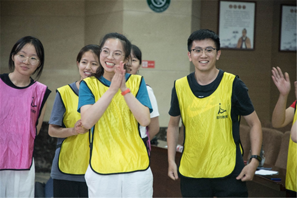 新员工们身着蓝、绿、黄、紫四个颜色的方阵对号入座,整个报告厅洋溢着青春的色彩。通过自我介绍和组内小游戏让每个方阵的队员打破隔阂,迅速融合。