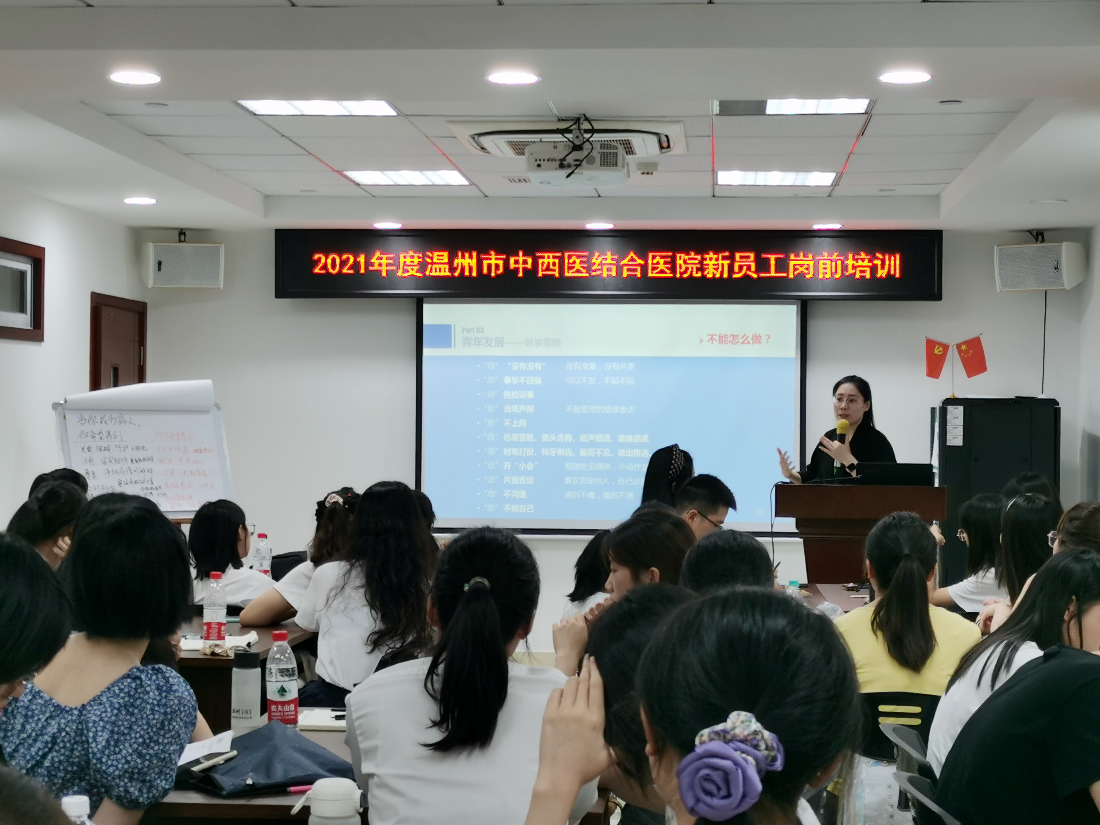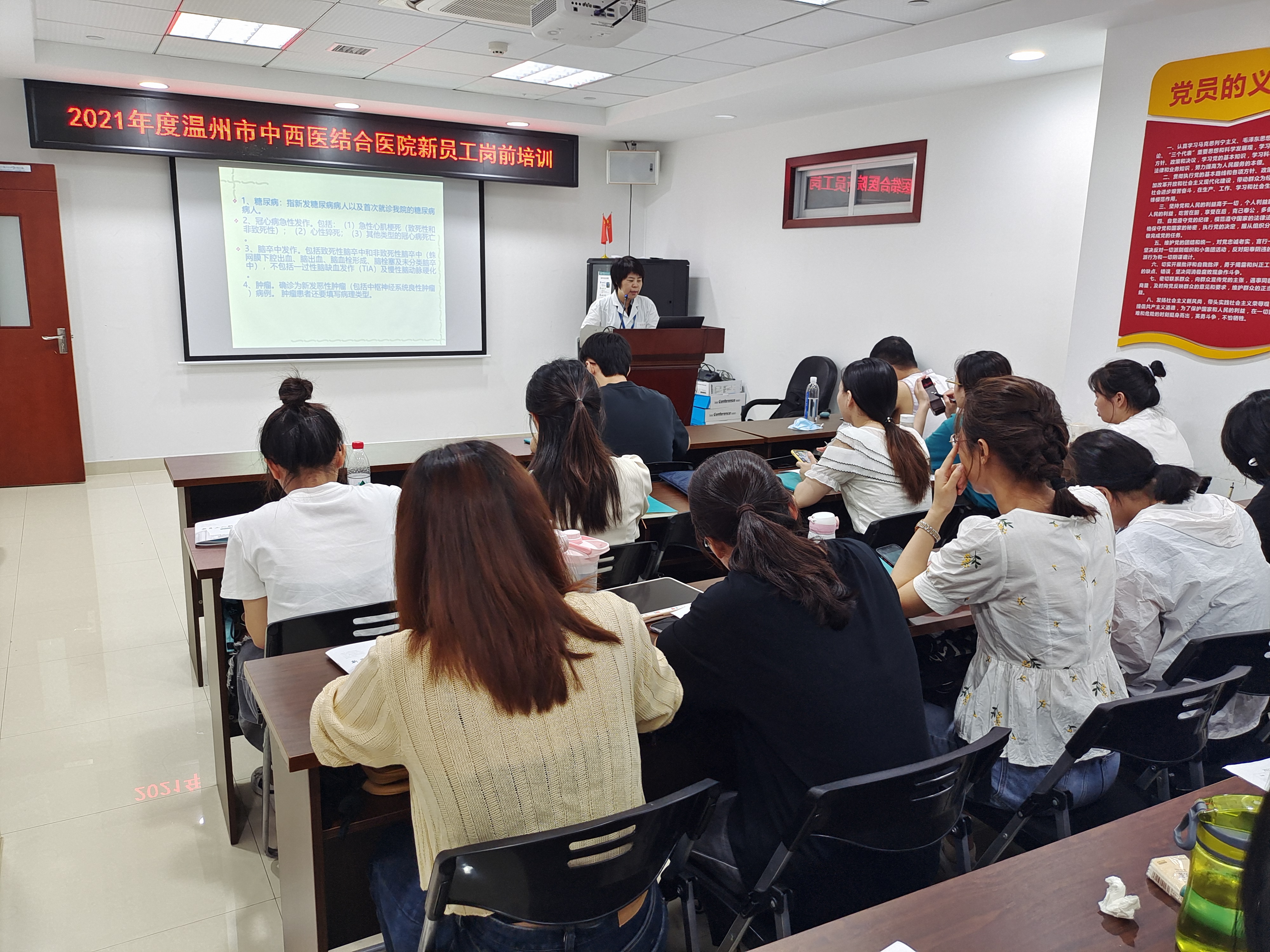 在随后的3天半的课程培训中,新员工们还接受了医院个性化定制培训“套餐”:《医疗质量管理与规范》 《医疗纠纷预防与处理》《科研规范》《护理培训》《医保政策与DRGS支付改革》《院感知识培训》《保健知识培训》《医院组织人事管理制度》《财务报销制度》《廉政文化建设》《消防安全》《团委工会入会须知》等课程的培训,由各职能科长亲自下场授课。