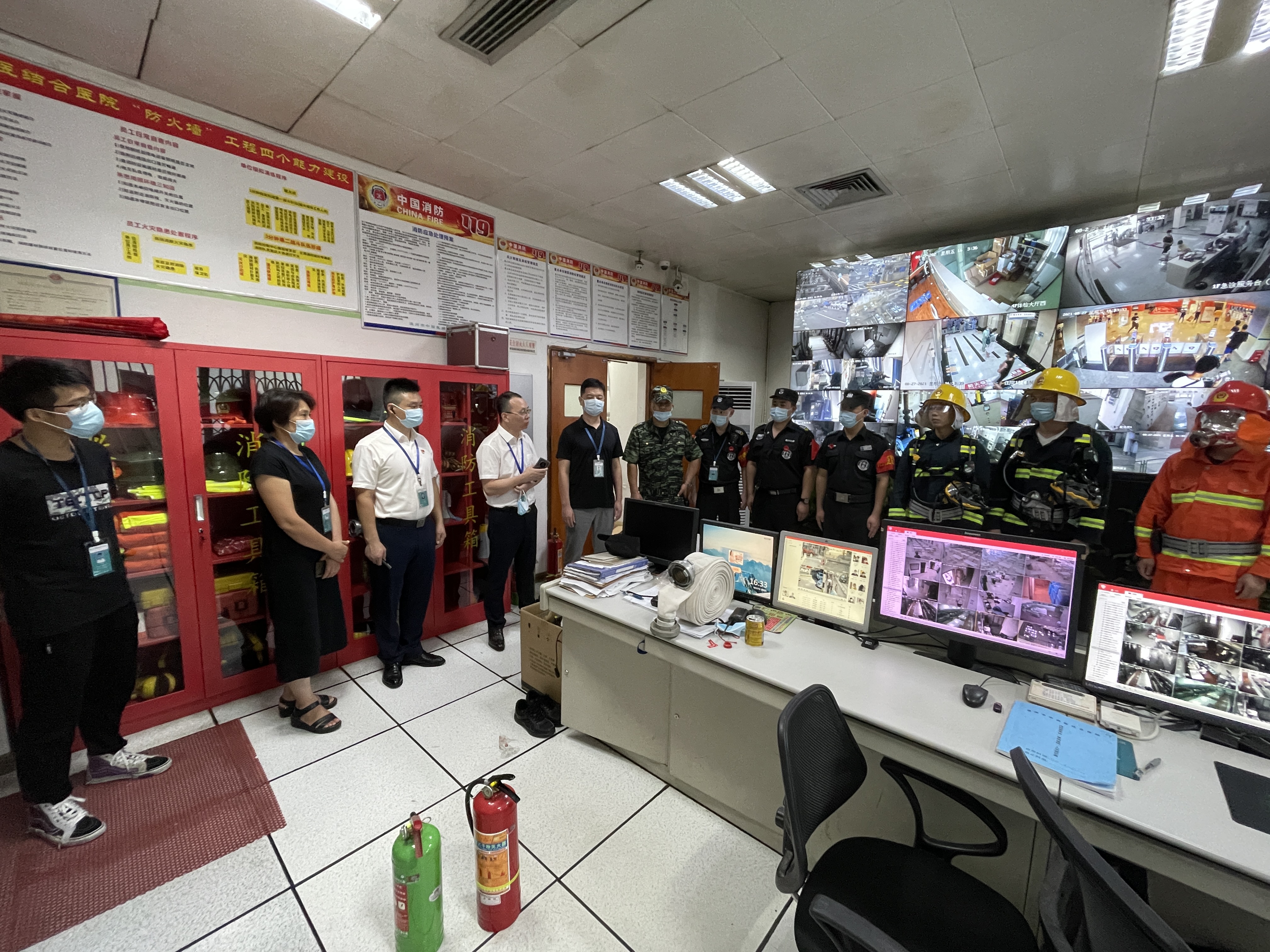 下午16:25,消防控制室接到食堂燃气报警信息,应急演练正式开始。消防控制室第一时间启动医院燃气泄漏应急预案,各组工作人员有序开展应急处置工作。本次演练历时半小时,内容涵盖了食堂燃气自动报警、上报应急事故并按照上级指示开展燃气泄漏应急处置措施、关闭天然气总阀门及电源总开关、开窗通风、设置消防安全警戒线、组织疏散现场人员、联系天然气公司对疑似漏气部位和燃气总开关进行应急抢修、终止应急响应等,在强有力的组织下,各组有序协同配合,顺利完成了本次应急演练。