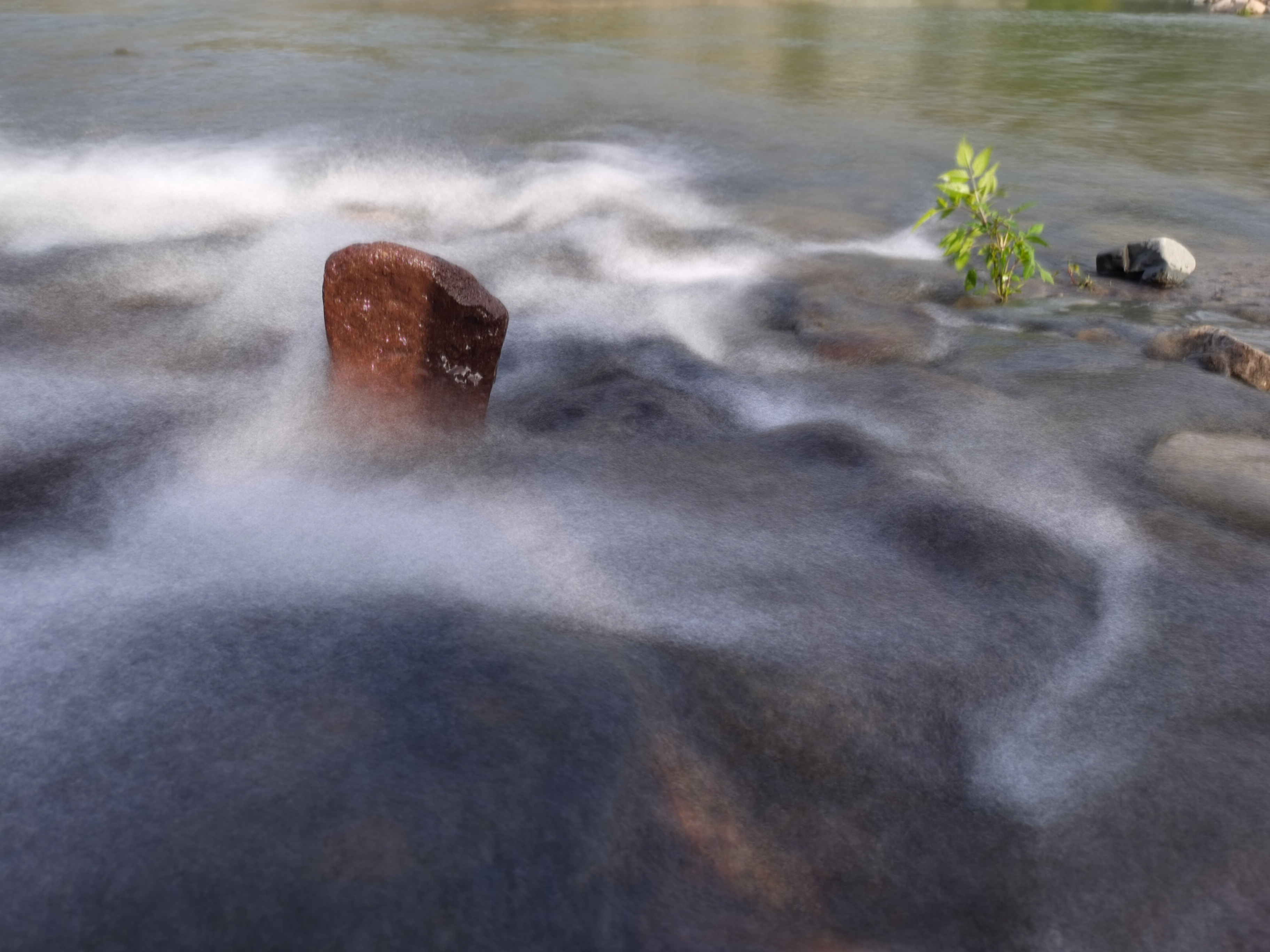 摄影作品拍摄于泰顺胡家大院周边的溪水矴步,作者尝试手机“流光快门——丝绢流水”拍摄,从中感受这动静结合、水似绸缎、中流砥柱、柔情似水的山水美景。