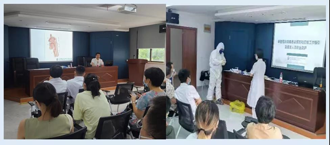此次培训针对经开区各级各类医疗机构中所有未接收过此类培训的医务人员,进行防护服穿脱与新冠病毒核酸采样现场实操培训。