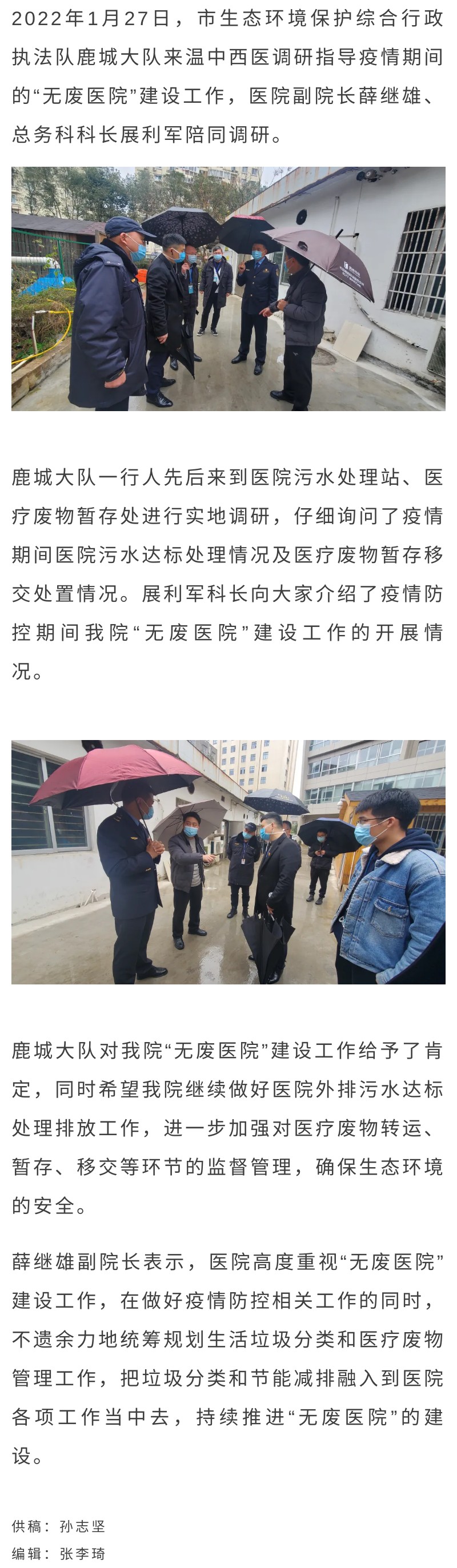 “无废医院”|市生态环境保护综合行政执法队鹿城大队到温中西医调研“无废医院”建设工作