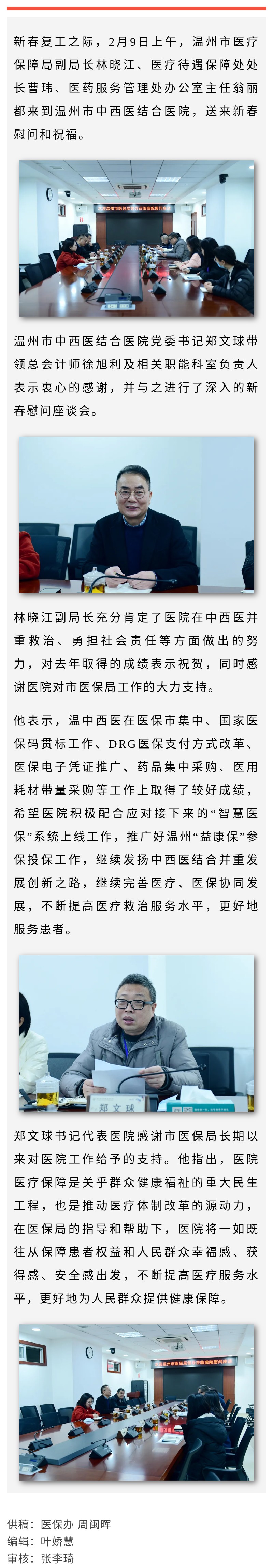 温州市医疗保障局副局长林晓江到温中西医慰问座谈