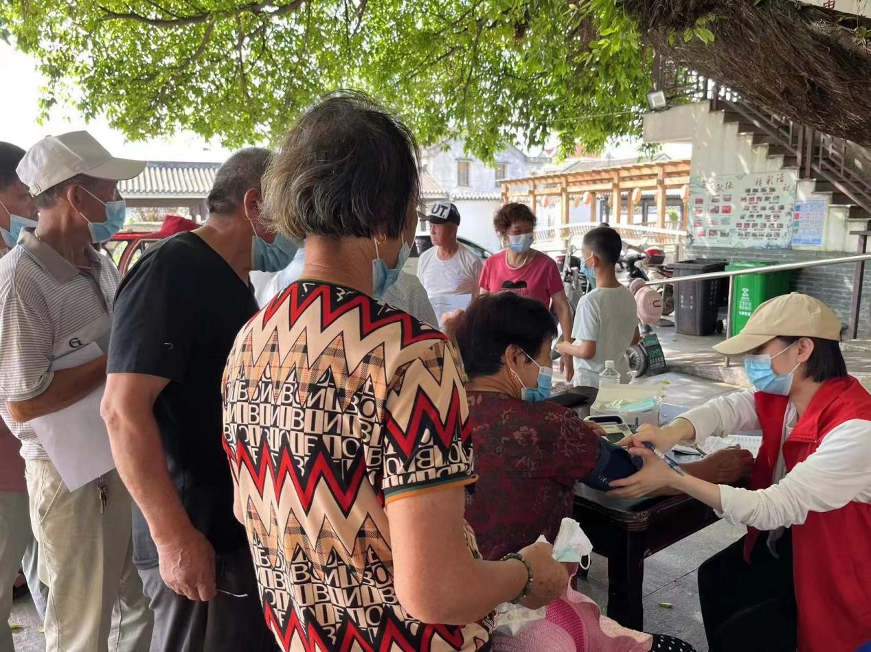 为了让群众在家门口享受到优质、便捷的医疗服务。7月3日,世界杯靠谱买球下载app专家应七都街道社区卫生服务中心邀请,到吟州村晚晴亭开展“红七月 送健康”义诊活动,为村民送去三甲医院的优质医疗资源。