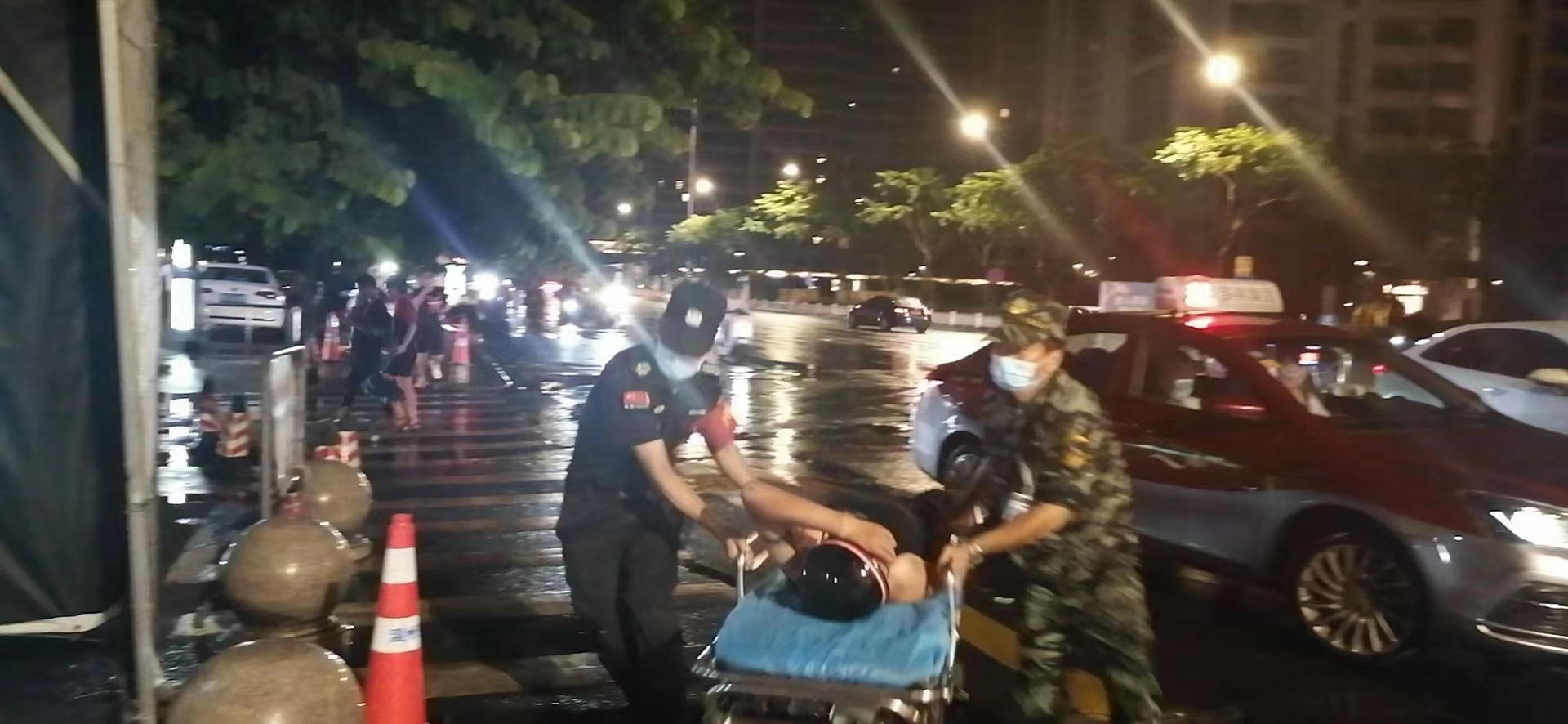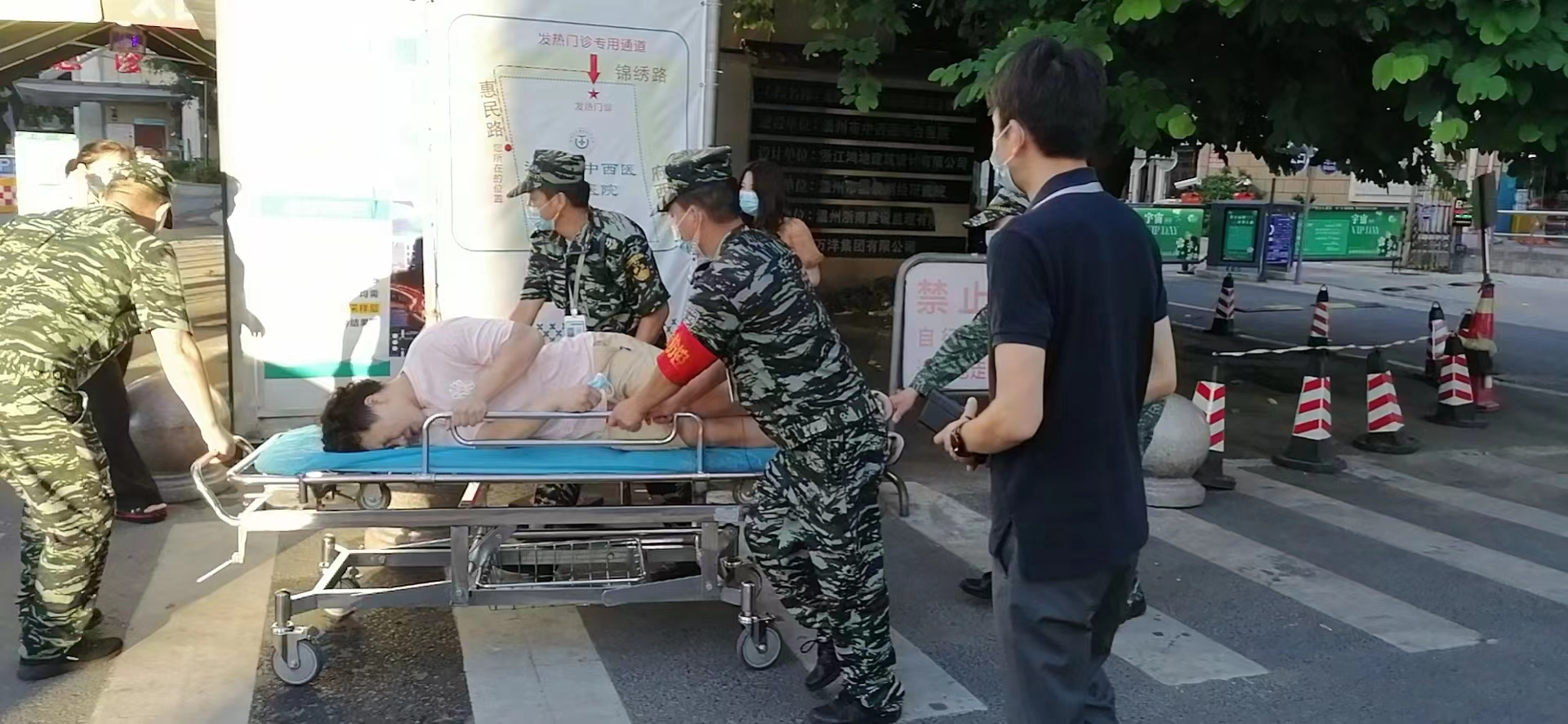 2022年8月6日晚21点多,在温州市鹿城区横渡桥公交站牌附近,一男子和一个外卖员骑电动车相撞,男子倒地不起,事故地点刚好位于买世界杯的网站附近,中西医安保队员王建、郭大发立即推平车到现场,经处理后男子并无大碍,由安保队员推至中西医急诊抢救室治疗。