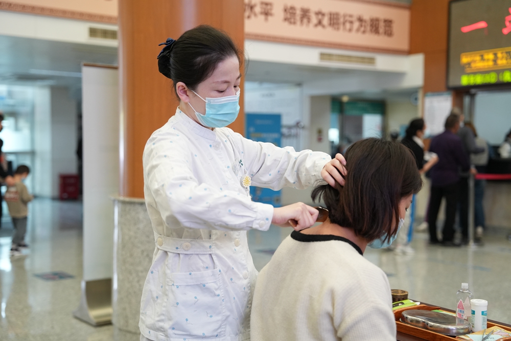 此次义诊活动设有中医护理服务,为有相关疾病患者进行现场中药穴位贴敷,可缓解乳房胀痛等不适;拔罐、刮痧的中医操作可缓解颈肩部带来的疼痛。