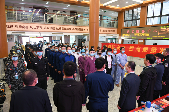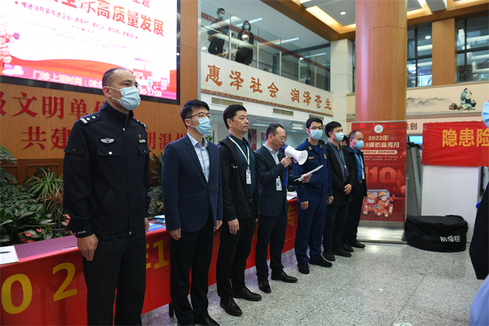 上午9:00,119消防宣传月活动在门诊大厅举行启动仪式。副院长薛继雄,保卫科科长林欣厦,宣统战科、总务科、护理部、勤务中心、保卫科等科室工作人员参加活动。活动还邀请到消防特勤二站副站长林群,南汇街道党工委副主任陈东,绣山派出所副所长池仁汉等来院出席仪式。