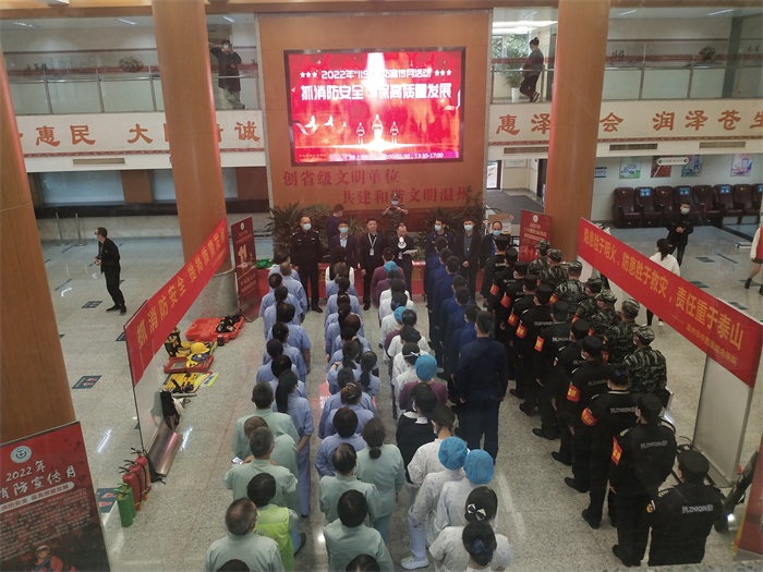 活动通过消防知识宣传、消防器材展示、消防安全知识问答、悬挂消防知识横幅、摆放消防宣传展报、LED屏滚动播放消防安全标语以及视频宣教等多样化形式,向医护人员以及群众进行了广泛宣传,营造浓厚消防宣传氛围。