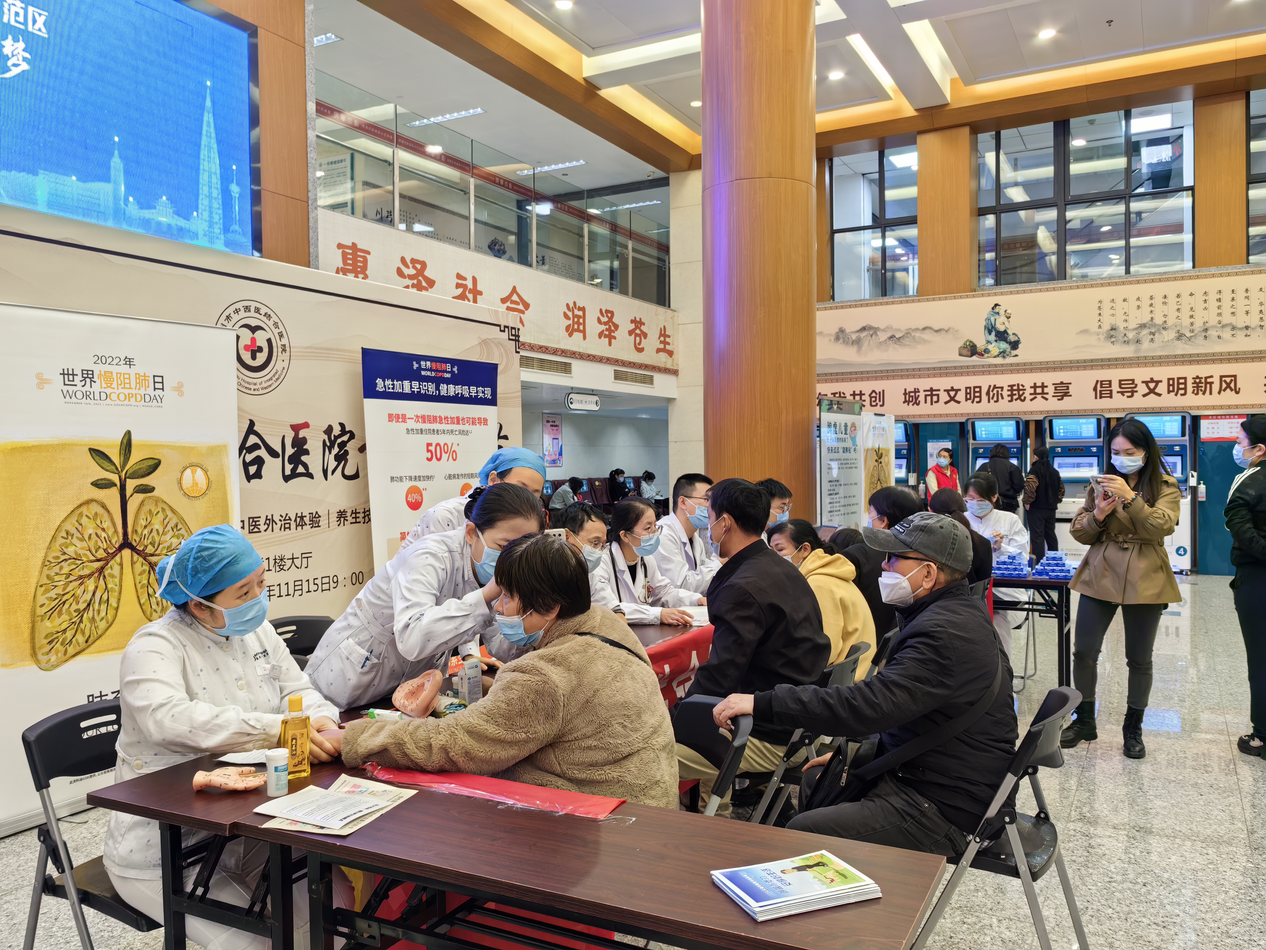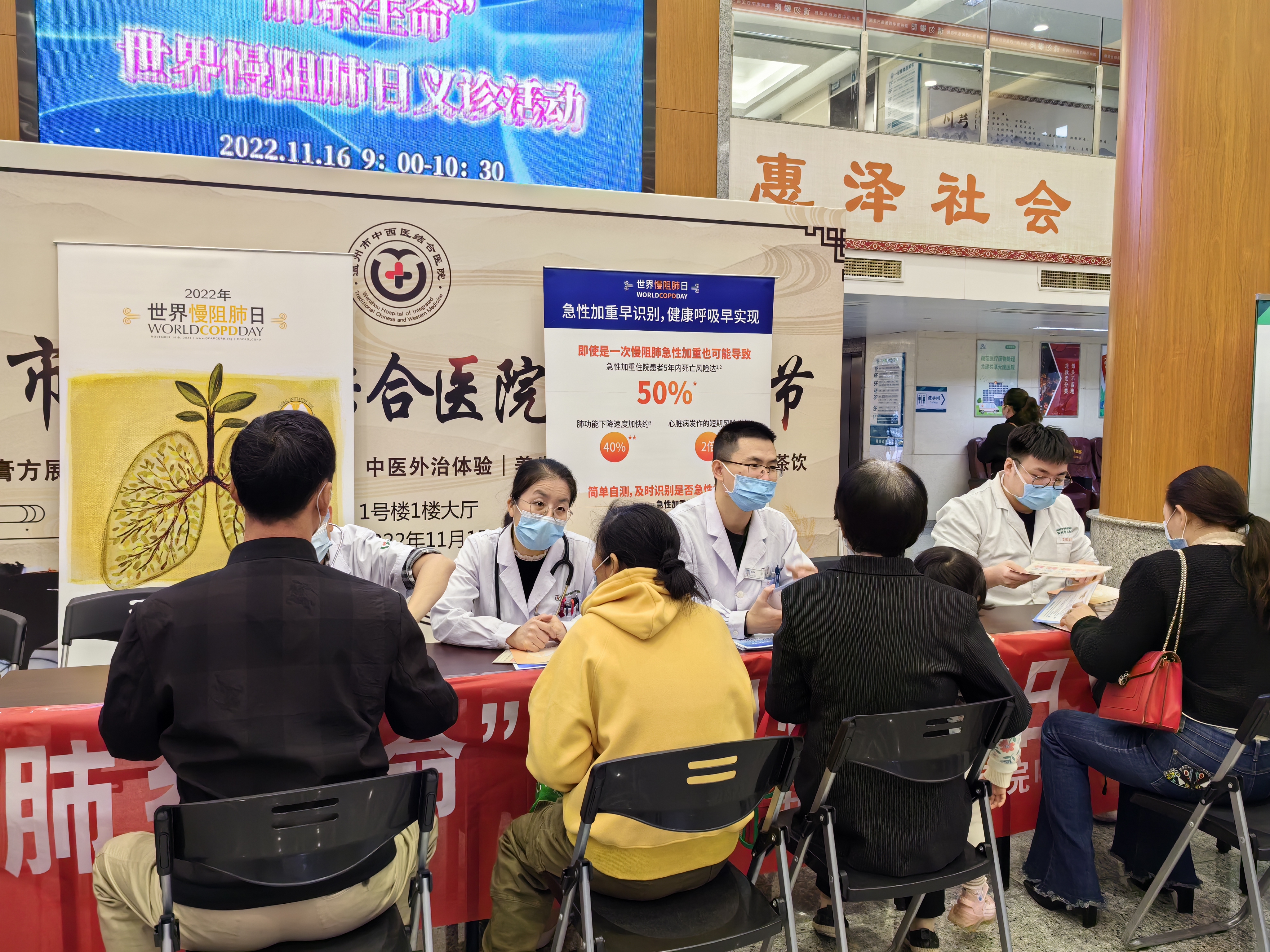 11月16日,世界杯买足球彩用哪个app正规呼吸与危重症医学科在科主任金晨慈及副主任蒋欢欢的组织下在门诊大厅开展“肺系健康 畅享呼吸”慢阻肺日义诊活动,旨在提高老年患者对慢阻肺的认识。
