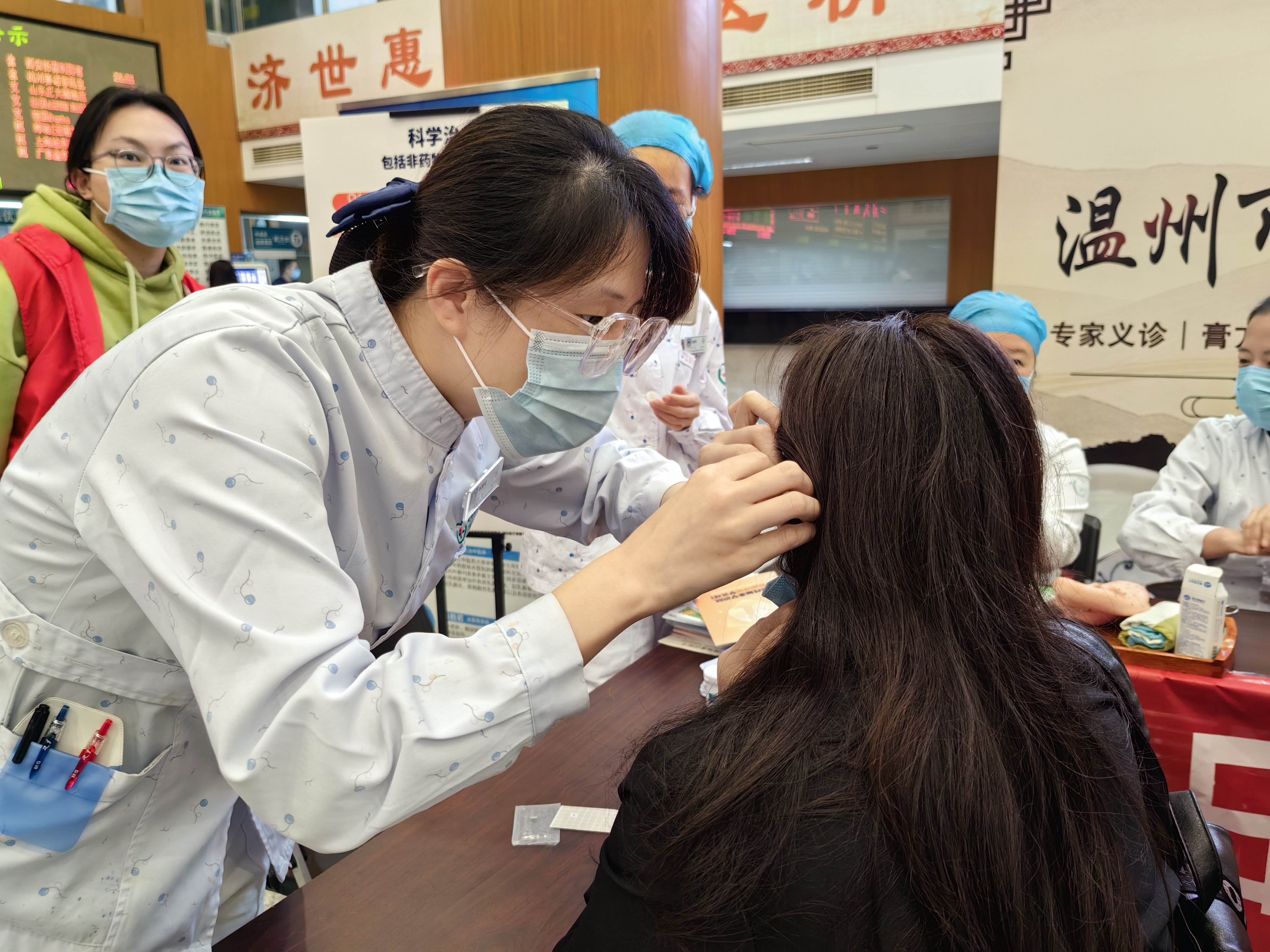 除了提供免费测血压、测血糖等义诊服务,呼吸与危重症医学科资深护士还为前来咨询诊疗的市民带来耳穴贴压及科室新项目新技术:手部刮痧+手指点穴+穴位按摩。该治疗通过对手部鼻、咽喉、舌根、胸椎、淋巴腺等穴位刺激,能缓解患者因肺部感染引起的咳嗽咳痰症状,收到患者一致好评。