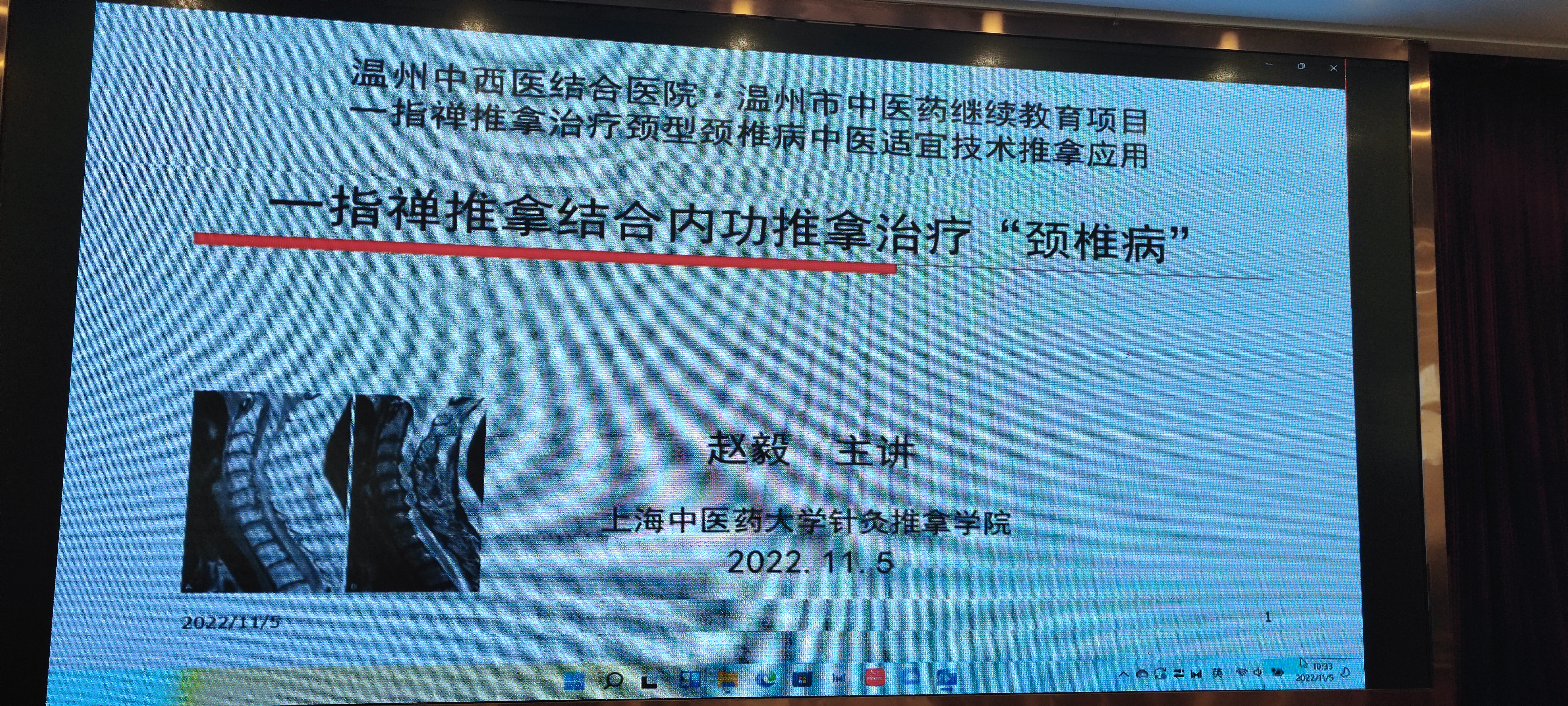会议邀请了省内外多名专家参会讲课。如中华中医药学会推拿分会顾问,上海中医药大学的赵毅教授在线上与我们分享了一指禅压推拿结合内功推拿治疗颈椎病的新思路。
