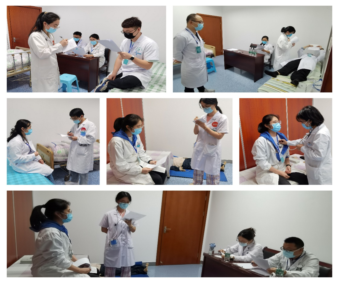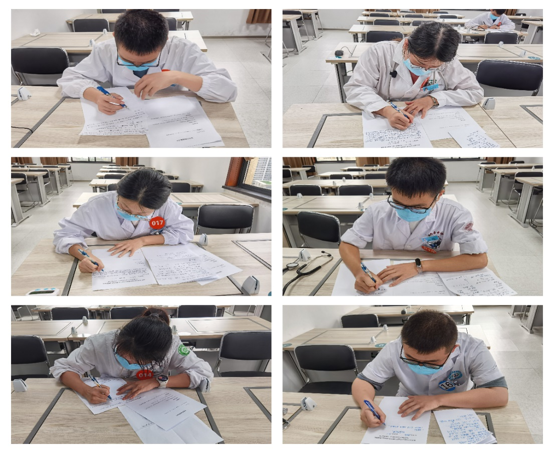 参赛对象为2020级住院医师规范化培训学员,本次比赛分三个部分:病史采集、病历书写及病例分析。由基地提供模拟病史的剧本,SP扮演患者,接受学员的问诊,并准备相应的辅助检查,以备学员需要时提供材料。每位学员病史采集后,由评委老师进行现场点评。随后要求学员30分钟内完成大病历的书写,并进行病例分析。