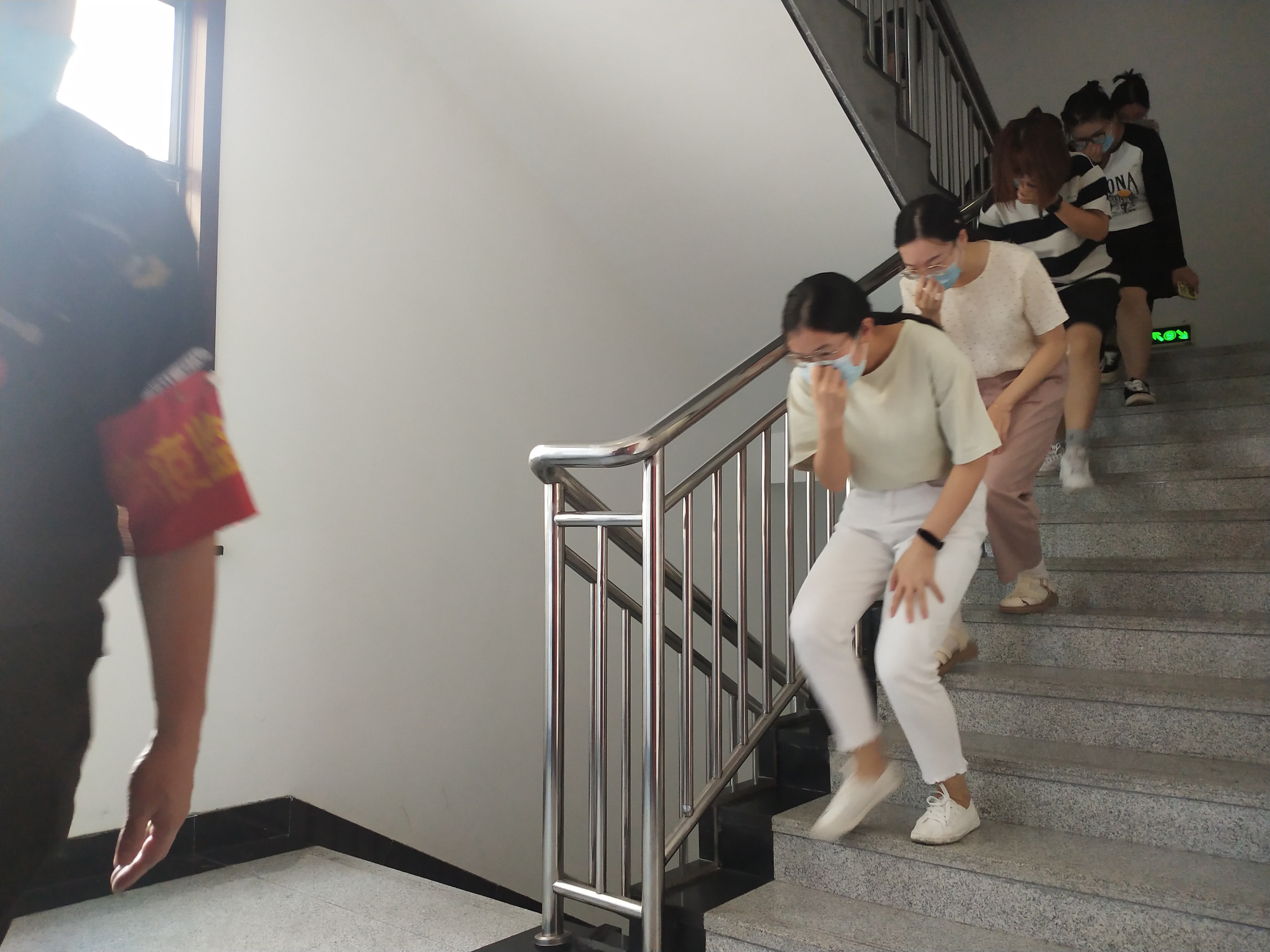 培训会后,保卫科模拟高楼火灾场景,带领新员工进行高楼疏散逃生演练。在2号楼消防演练场,保卫科队长张东军讲解消防实战演练注意事项,在演练中,对参与人员进行规范指导。
