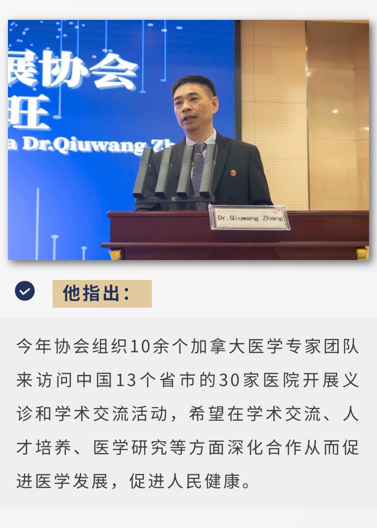 Dr.Qiuwang Zhang介绍了加拿大白求恩医学发展协会的发展历程和宗旨使命。