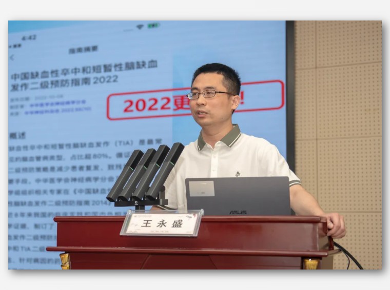神经内科副主任王永盛 分享《中国缺血性卒中和短暂性脑缺血发作二级预防指南解读》。