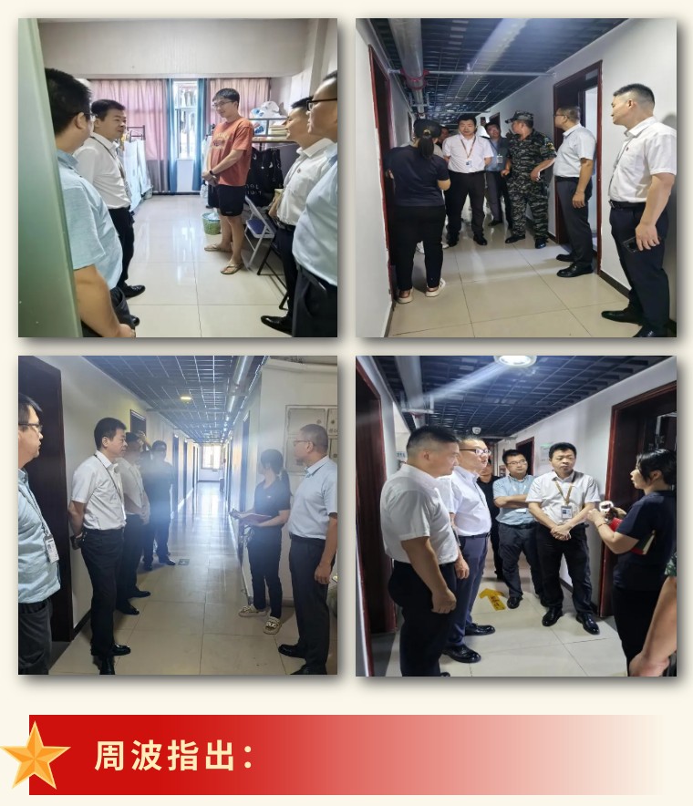 要坚持问题导向,严格依据宿舍安全生产相关规定,建立健全自查自纠的长效安全机制,落实制度上墙,做好宿舍亮牌,建议启动文明宿舍评选,保障宿舍卫生情况,并对本次检查中发现的监控、照明、外墙爬藤等问题点对点提出了针对性的整改要求。