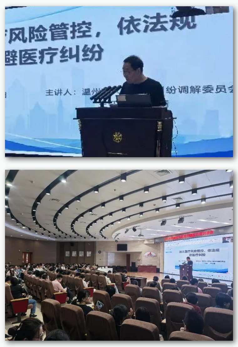 李永清主任以《加大医疗风险管控,依法规避医疗纠纷》为题,结合《民法典》及其相关司法解释展开讲解。他结合医疗纠纷的典型案例,详细讲解了医疗损害责任的归责原则、医疗过错的认定以及医疗行为的免责情形等内容,并与现场的医务人员就履行告知义务、树立证据意识、规范执业行为等方面进行了深入交流。