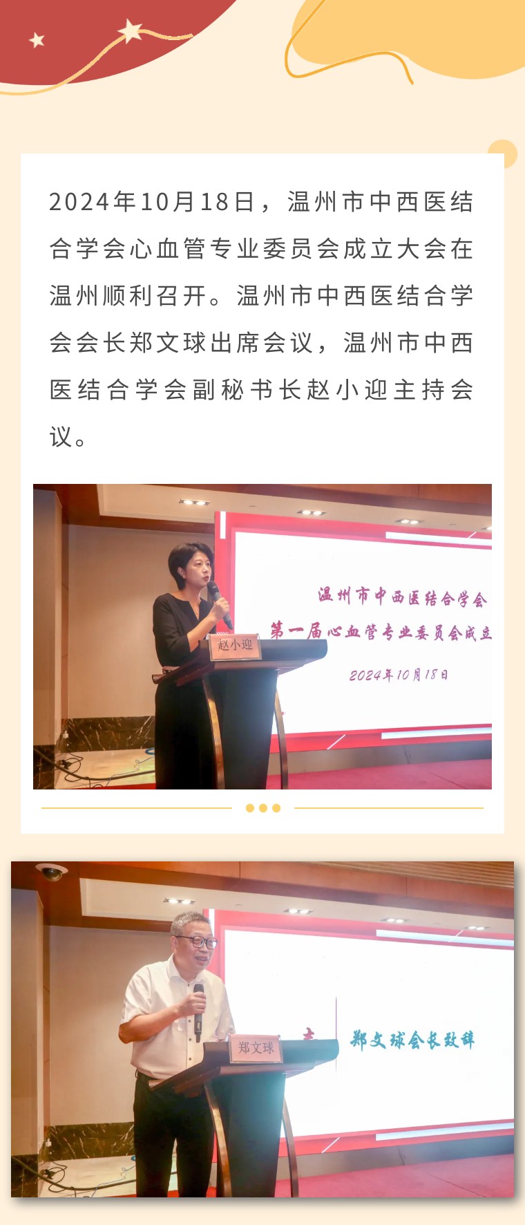 新任主任委员姜文兵在讲话中表示:心血管专委会作为行业内的学术交流平台,承载着推动区域心血管学科发展、提升心血管疾病诊疗水平、服务患者健康的重要使命,在世界杯买足球球app世界杯买足球彩用哪个app正规学会的领导下,他将带领专委会全体委员,秉持“创新、协作、共享、发展”的理念,从心血管专业医疗服务、科学研究、人才培养等角度出发,依托各个成员单位的优质医疗资源和优秀人才,共同推动专委会的工作不断向前发展,为提高温州市心血管疾病的整体预防和诊治水平贡献更强大的中西医力量。