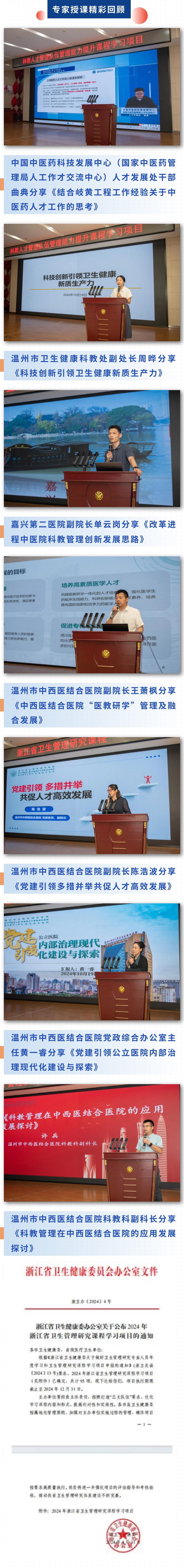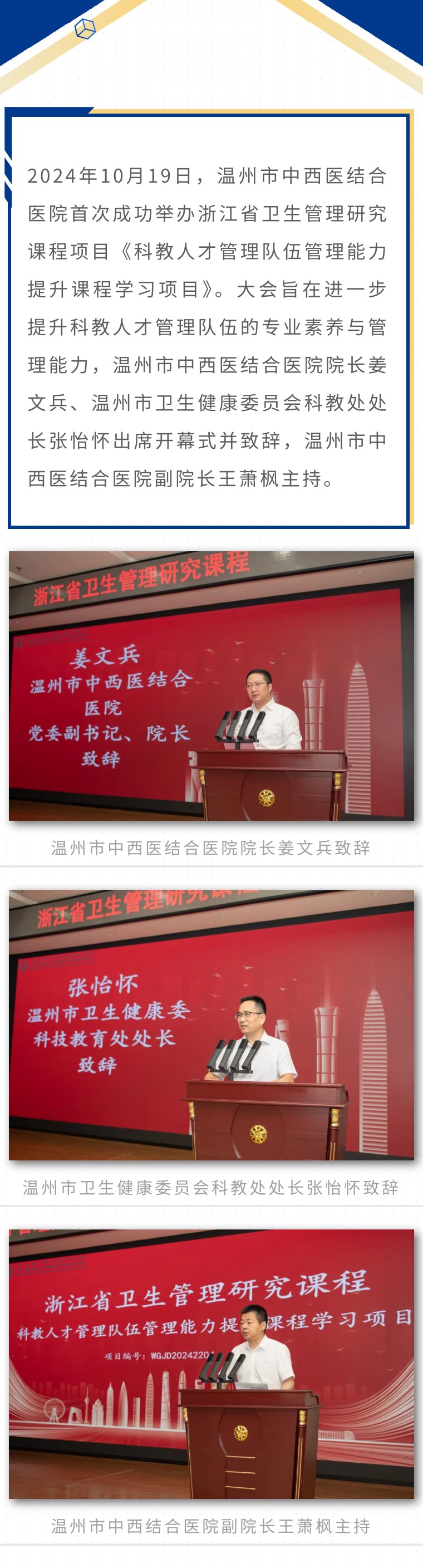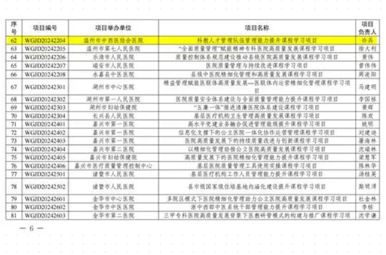 据悉,为推动公立医院实现高质量发展,并进一步完善浙江省卫生专业技术职称评价体系,浙江省特别设立卫生研究管理课程项目。该项目涵盖卫生政策解读、医院管理策略、公共卫生实务以及科室管理技巧等核心课程内容。温中西医在科教人才管理领域积极申报,并成功跻身该项目之中。值得一提的是,此次温中西医不仅成为浙江省95个立项项目中的佼佼者,更是温州地区仅有的13个立项项目之一,标志着医院在浙江省卫生管理研究课程项目中实现了零的突破。