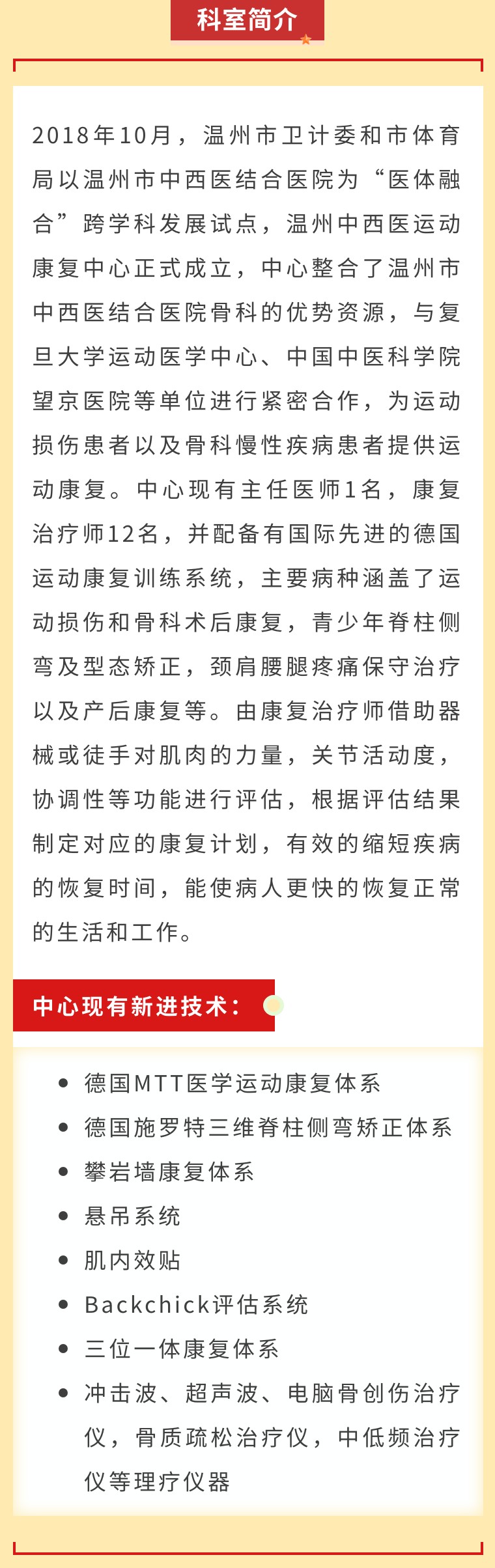 在康复治疗理念飞速迭代的当下,医院运动医学科展现出卓越的洞察力与前瞻视角,持续探索并实践创新的康复治疗路径,巧妙融合中医传统康复精髓与现代智能科技、数字化康复技术,为患者量身定制了全面且个性化的康复治疗方案,引领康复服务迈向新高度。