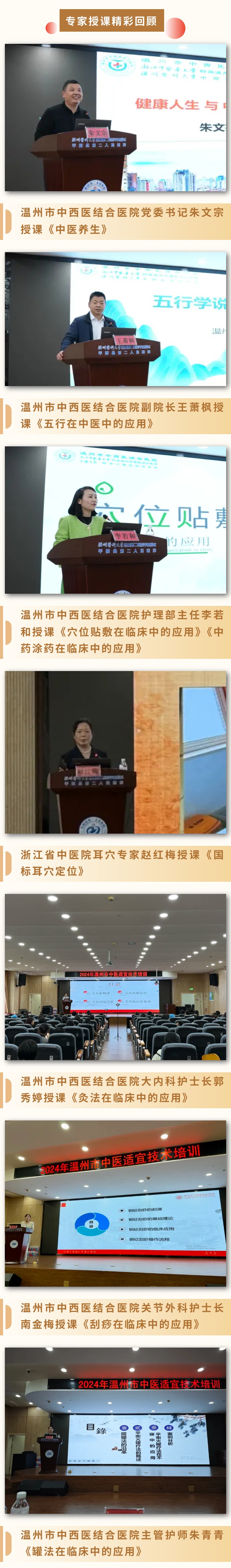 本次培训班由全国中医护理优秀人才、浙江省“十百千”中医护理优才、中医护理专家等组建,采用网络学习、现场授课与实操工作坊相结合的教学形式,各位授课老师深入浅出地讲解,将临床常见案例为出发点,以中医理论辩证对症加以中医适宜技术,引导学员将理论与实际相结合,学以致用,教学形式多样,内容丰富全面,使学员们初步掌握中医护理的基础理论与技能。