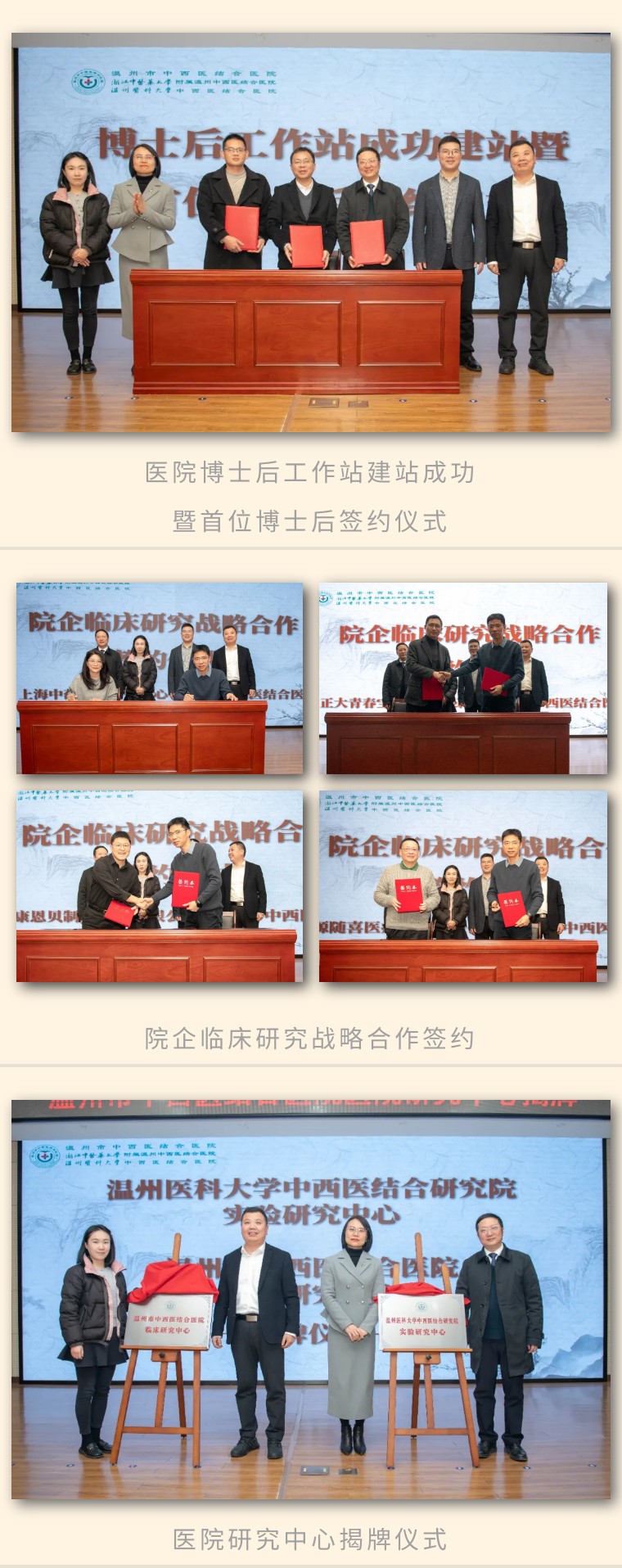 在会议上,还同步举办了多项重要活动,包括医院博士后工作站建站成功暨首位博士后签约仪式,院企临床研究战略合作签约,以及医院研究中心的揭牌仪式。