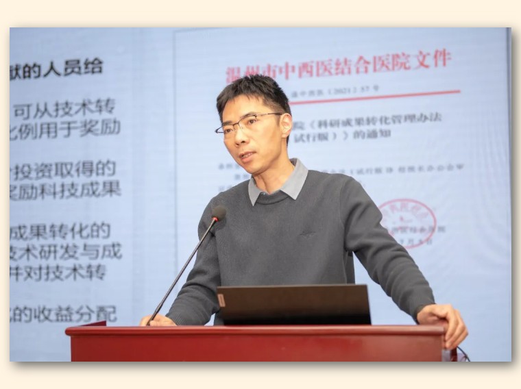随后,医院党委委员、副院长程斌对医院院内制剂转化工作进行了详尽的阐释,并在现场回答了与会者的疑问,使院内制剂的研发过程更加明晰。