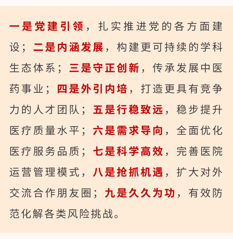 姜文兵指出,2025年是“十四五”规划的收官之年,也是进一步全面深化改革的关键之年,医院将以三个“一号工程”为牵引,坚持“中医高水平、西医高质量,中世界杯靠谱买球下载app攀高峰登高地”发展路径、“123456”发展思路不动摇,主要预期目标为2024年度国考前十,着力塑造高质量发展新动能新优势,为温州提速打造“全省第三极”贡献更强力量。