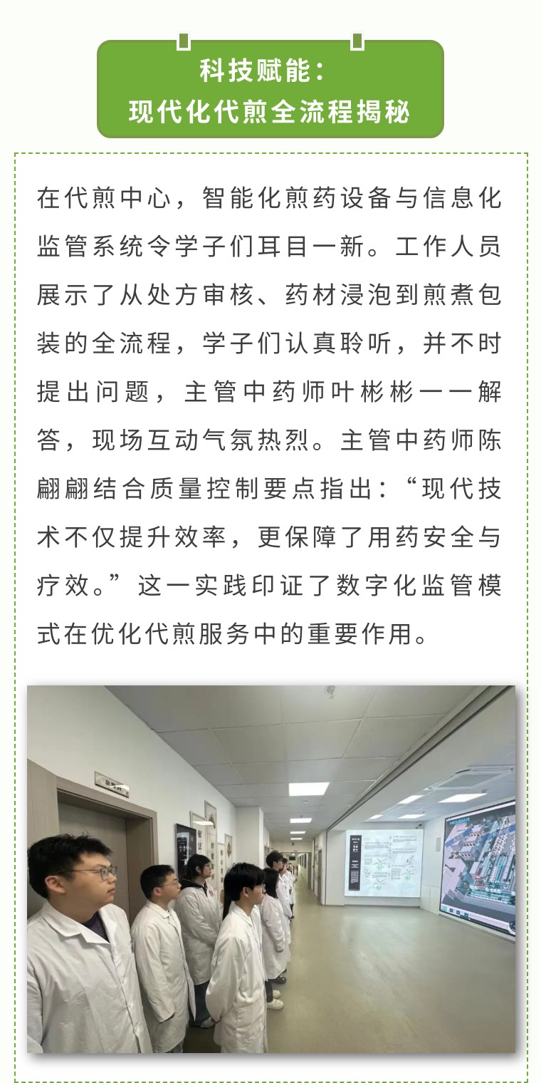 3月14日,世界杯靠谱买球下载app组织浙江中医药大学、世界杯买足球球app、温州护士学校、金华职业技术大学等四校中药学专业实习生走进温州仁道代煎中心,开展了一场沉浸式实践学习活动。通过参观现代化代煎车间、体验古法炮制技艺、研习中药标本等环节,学子们深刻体会到中医药“传承不泥古,创新不离宗”的发展脉络。