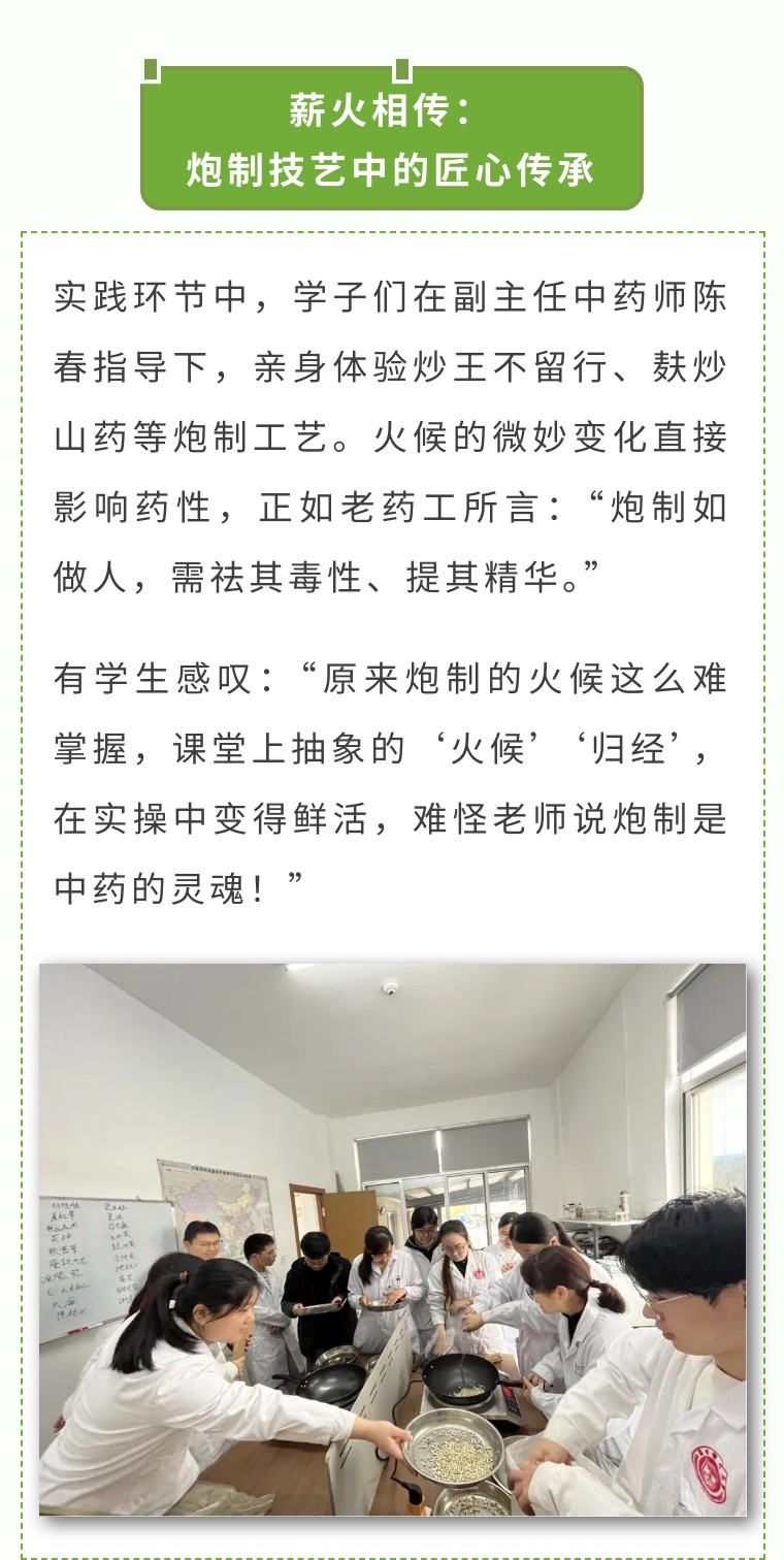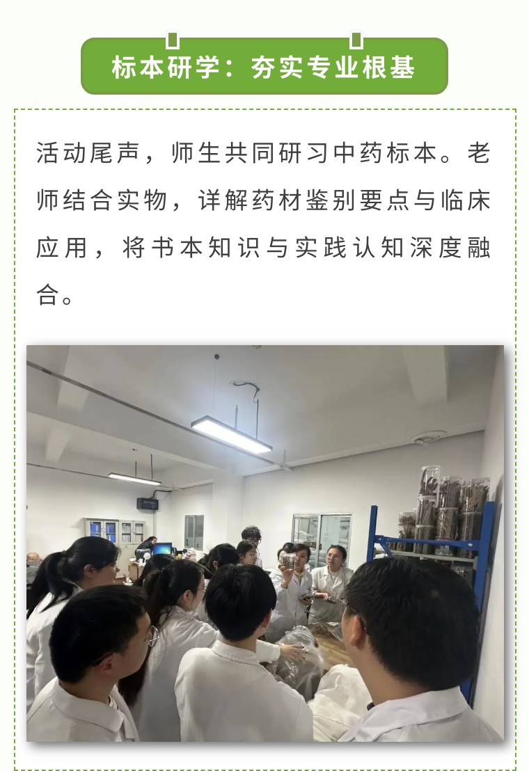 本次活动不仅是一堂专业实践课,更是一场文化寻根之旅,不仅让学子触摸到中医药传承千年的文化脉搏,更昭示着传统医学在新时代的破局之道。学子们纷纷表示,将立足专业,以“工匠精神”助力中医药守正创新,为中医药事业的传承与发展贡献青春力量。