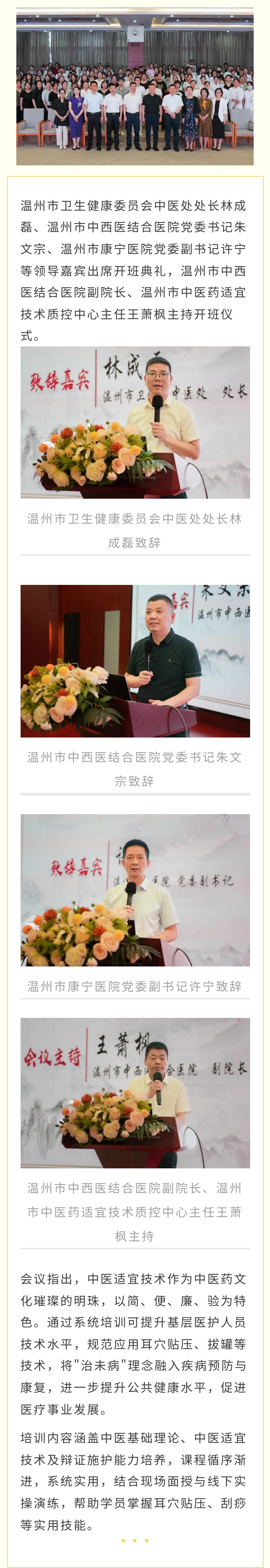 5月17日,由温州市卫健委指导,世界杯买足球球app世界杯靠谱买球下载app学会、世界杯买足球球app联合主办的2025年世界杯买足球球app医适宜技术培训班(第12站) 在温州市康宁医院顺利开班,旨在传承祖国医学精髓智慧,进一步推广中医适宜技术,提升基层医疗服务能力。