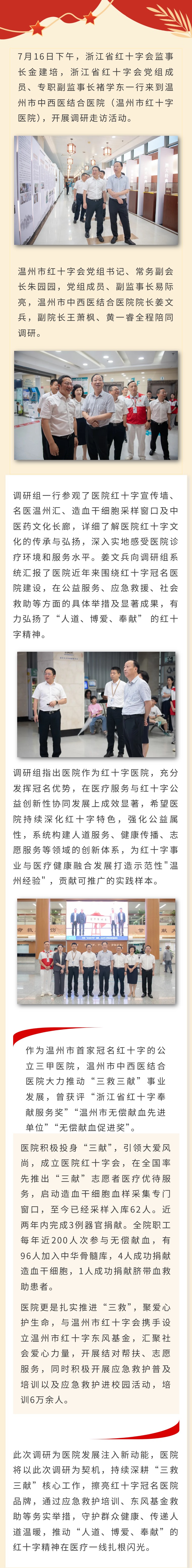 浙江省红十字会监事长金建培一行走访调研温州市红十字医院