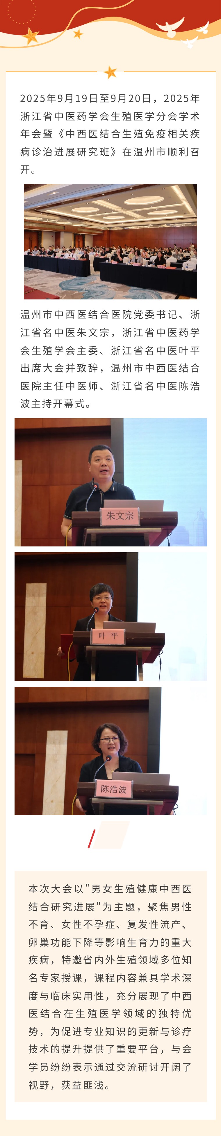 2025年浙江省中医药学会生殖医学分会学术年会暨《中世界杯买足球彩用哪个app正规生殖免疫相关疾病诊治进展研究班》顺利召开