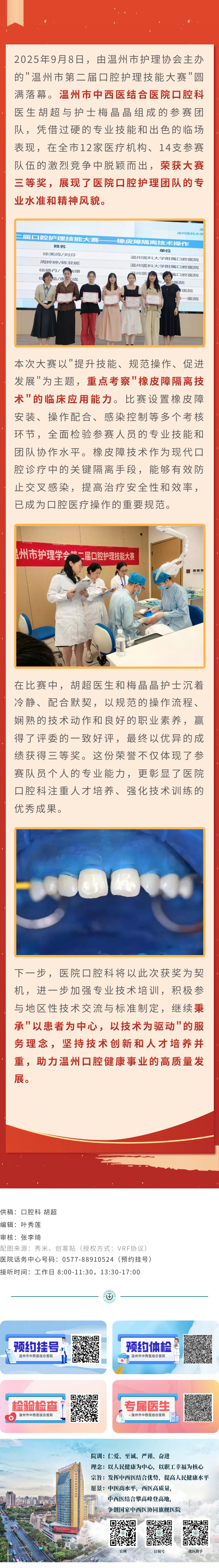 温中西医口腔科团队荣获温州市口腔护理技能大赛三等奖