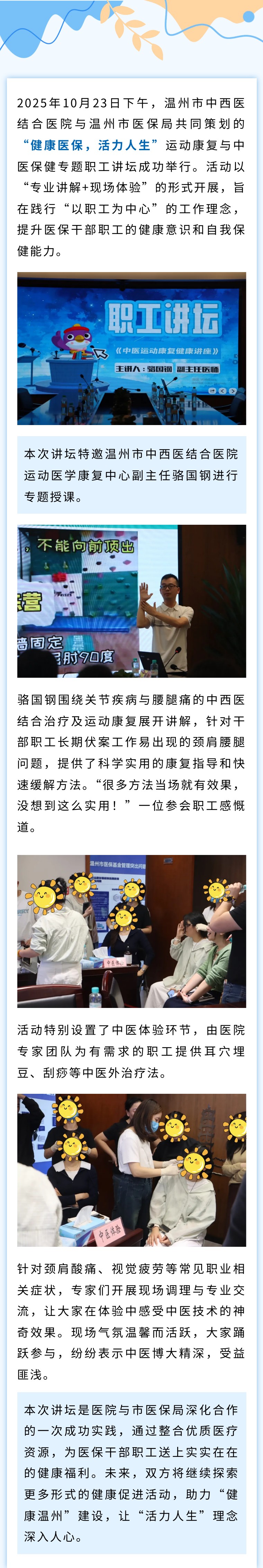 温中西医与市医保局联合举办职工健康讲坛:运动康复与中医保健为医保人“赋能”