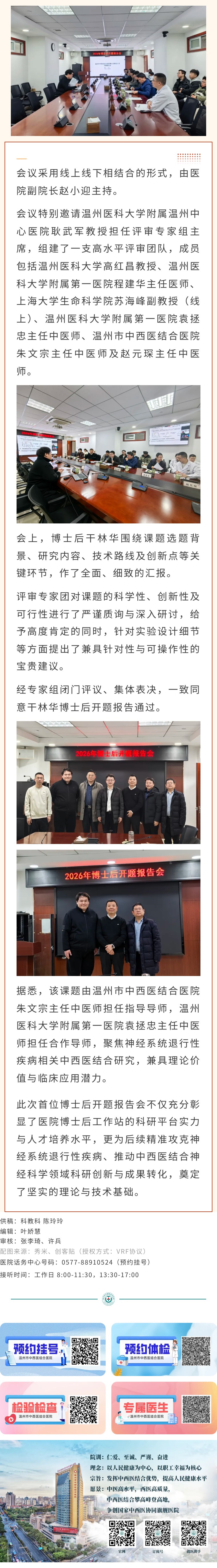 本次会议旨在对博士后课题进行严谨的学术论证,标志着医院在神经科学领域的基础与临床转化研究迈出了坚实一步。
